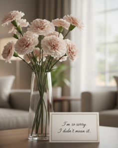 Many people choose carnations when saying sorry to friends, family, or someone close.