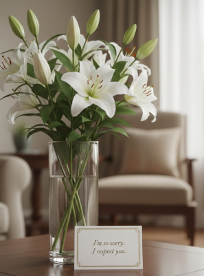 If the apology is serious, calm flowers like lilies or white roses can show deep respect and honesty. Also, think about colour. Soft colours like pink, white, or light purple usually feel gentle and sincere. Very bright or romantic colours may not always fit every apology.