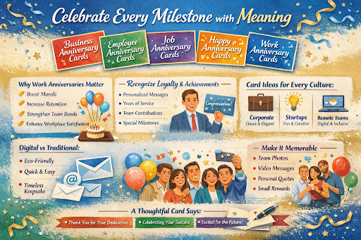 Celebrating milestones is not just about marking a date it’s about honoring dedication and growth. Whether you choose business anniversary cards for company achievements, heartfelt employee anniversary cards for loyal team members, thoughtful job anniversary cards for personal milestones, or a cheerful happy work anniversary card for workplace celebrations, the goal is the same: appreciation.