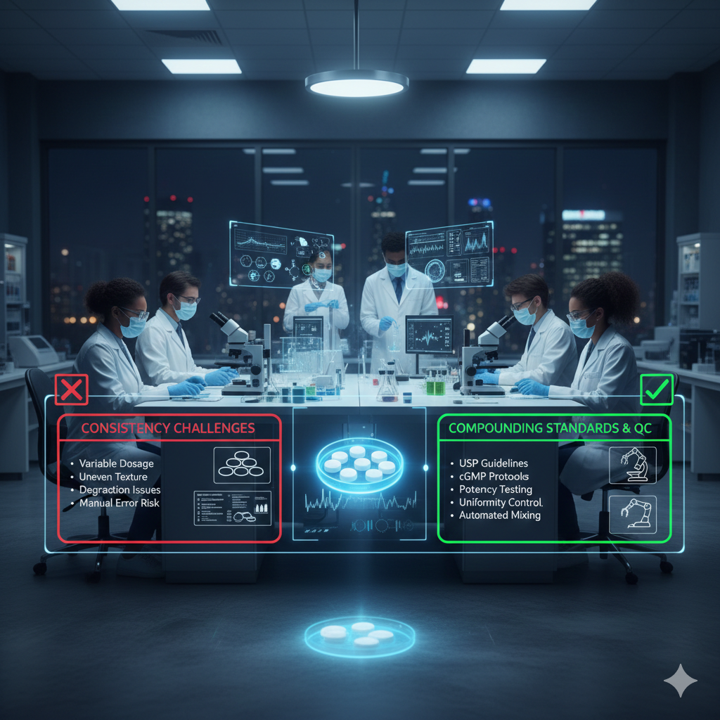 Quality control (QC) is one of the most significant challenges in the compounding of ketamine troches. Pharmacists and compounding pharmacies must conduct multiple tests and checks to verify that each batch of ketamine troches meets the required standards for potency, purity, and consistency.